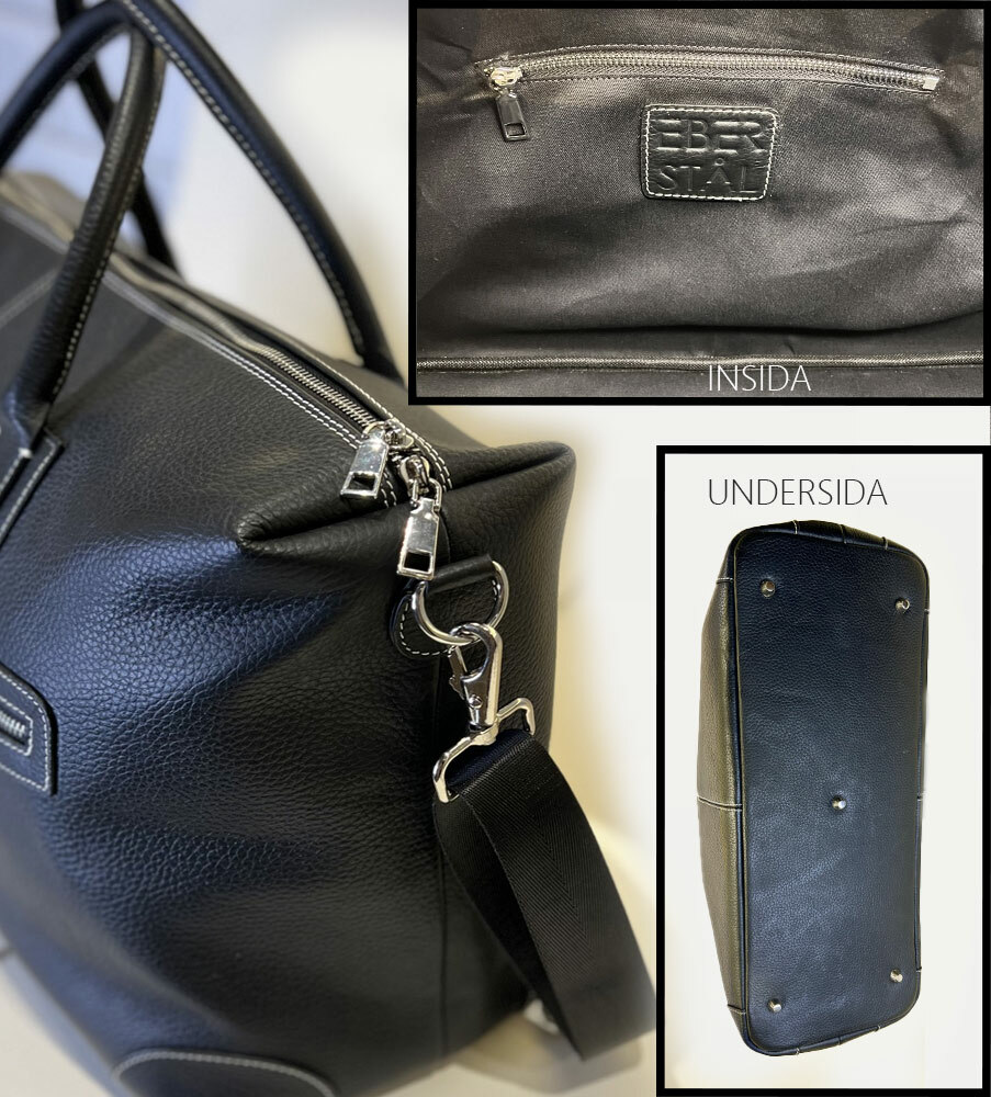 Här har du en elegant weekendbag i högkvalitativt läder med en tidlös, sober karaktär. Det mjuka men slitstarka lädret utvecklar en vacker patina med tiden, och den svarta färgen tillsammans med den strukturerade ytan ger ett stilrent uttryck som fungerar för alla typer av resor. Kontraststygnen ger en diskret touch av hantverk och finesse.
