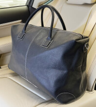 Black Leather Weekend Voyager Bag