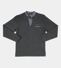 LÅNGÄRMAD COMBOJERSEY MED INFÄLLD SKJORTA & MANDARIN KRAGE - GRÅ
