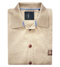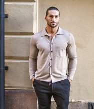 Dahlin By Eberstål utökar sortimentet med en härlig, trendig cardigan, en så kallad over-shirt i finaste merinoull. Plagget är slätstickat med krage och helknäppning fram med exklusiva läderknappar. Kan stylas öppen eller knäppt, beroende på väder och vind och om du har en skjorta eller t-shirt inunder. Du kan använda den slätstickade overshirten som en casual, trendrätt ”kavaj” till våra häftiga Dahlin By Eberstål skjortor. Du kan också bära denna fina solbeigefärgade cardiganen direkt på kroppen för en skön stil och ultimat comfort.