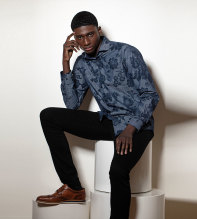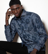 En alternativ skjorta istället för den klassiska jeansskjortan. Perfekt för dig som vill liva upp vardagen, som inte bara vill smälta in. Skjortan är uppsydd av en fabulös jaquard-väv som ger dig levande blommor och blad och visar din fingertoppskänsla när det kommer till att välja snygga skjortor. Tyget kommer från vår italienska vävare i en jeansblå färgnyans som passar lika bra till dina favoritbyxor som till dressade kavajbyxor. Snygg som solo eller ihop med favoritkavajen. Regular cut med insydd ficka. Strykfri. Maskintvätt: 40 grader