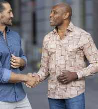Tillverkad i exklusiv italiensk bomullspoplin kombinerar den sofistikerad komfort med ett uttrycksfullt, maskulint rutmönster i trendig brun ton – även tillgänglig i attraktivt blå toner. Den skarpa designen och den lyxiga känslan gör skjortan lika självklar på festen som till en mer avslappnad look.