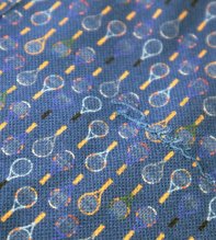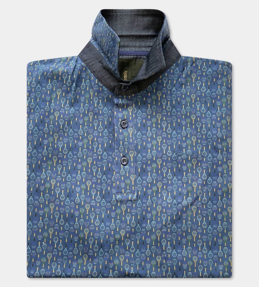 Kortärmad piketröja med sportigt mönster i en snygg passform. Mönstret är tennisracketar och piketröjan har en mörkblå jeanskrage.