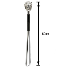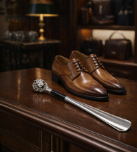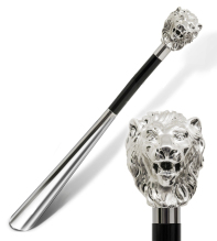 Ett klassiskt och elegant skohorn i tidlös italiensk design som är långt. Handtaget är handgjutet i silverpläterad resin och format som ett lejonhuvud – en symbol för styrka, värdighet och kunglig elegans. Det svarta, glanspolerade träskaftet ger en exklusiv känsla och avslutas med en slitstark ände i ABS för bästa hållbarhet.