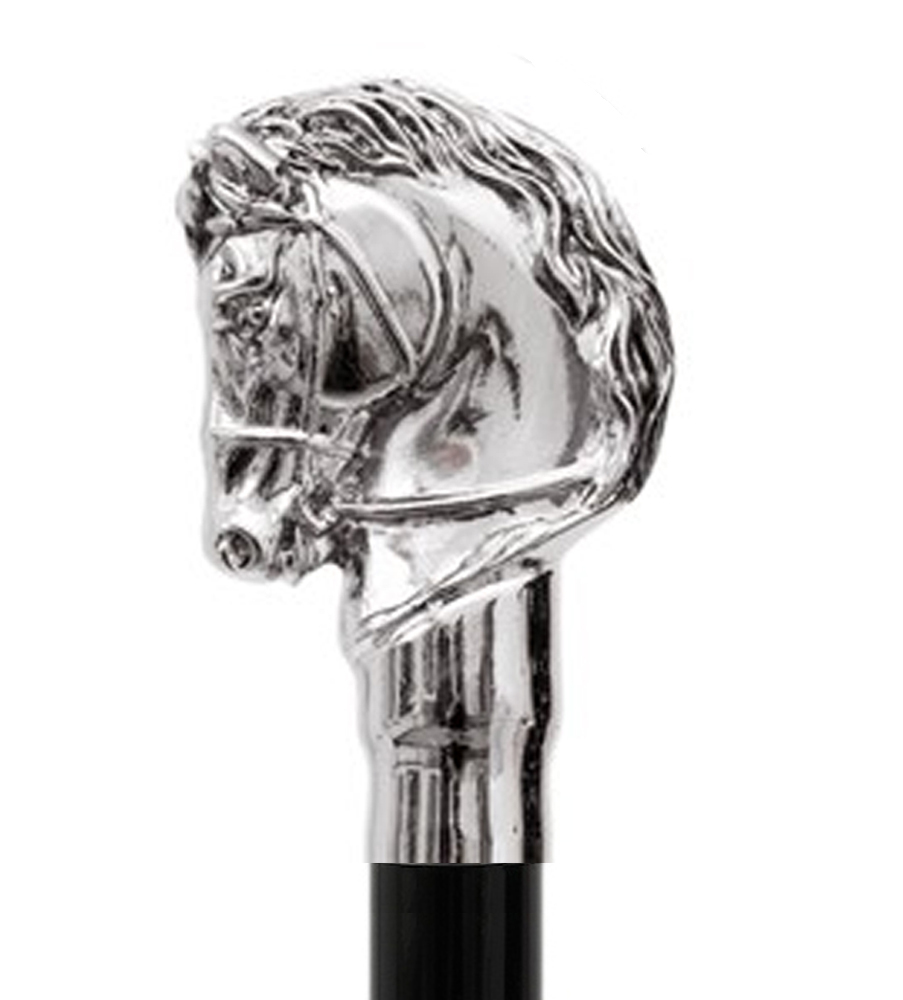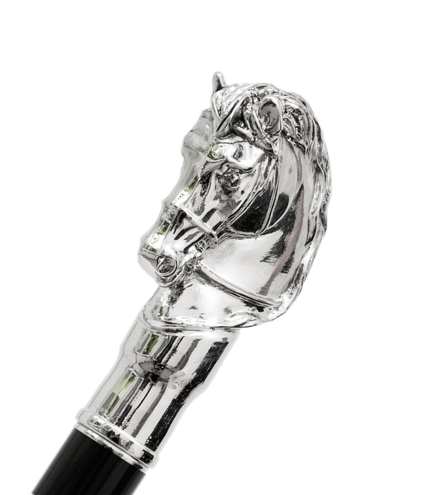 Handtag: Hästhuvud i silverpläterad resin