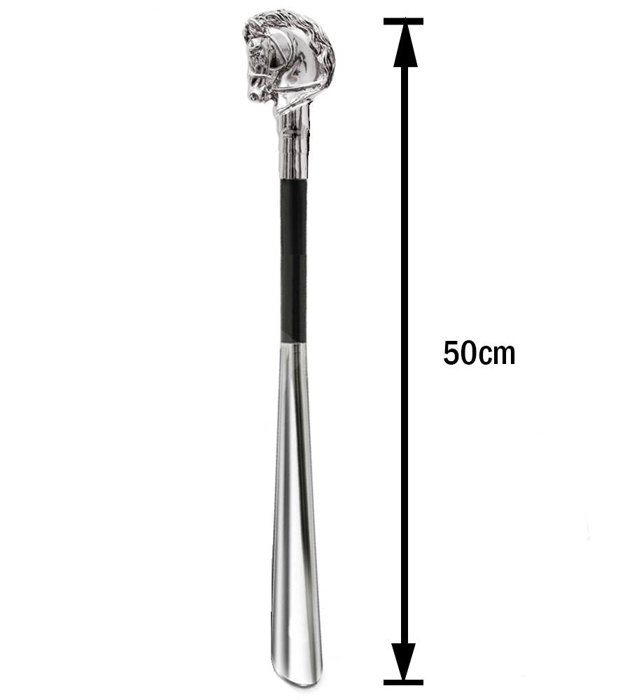 Detta långa skohorn på 50 cm kombinerar funktion, elegans och genuint hantverk. Skohornet är tillverkat i Italien och har ett dekorativt handtag format som ett detaljrikt hästhuvud, handgjutet i silverpläterad resin. Hästen symboliserar styrka, frihet och klassisk elegans – en perfekt detalj för den som uppskattar stil och kvalitet.