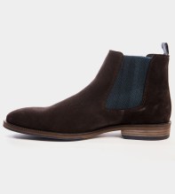 Chelsea boots i mocka med klassiska resårer på båda sidor samt en dragtamp baktill. Resåren har ett fiskbensmönster och modellen är även försedd med en semidressad sula med blå slityta för att ge avtryck. En sko för den självsäkre mannen med stil.