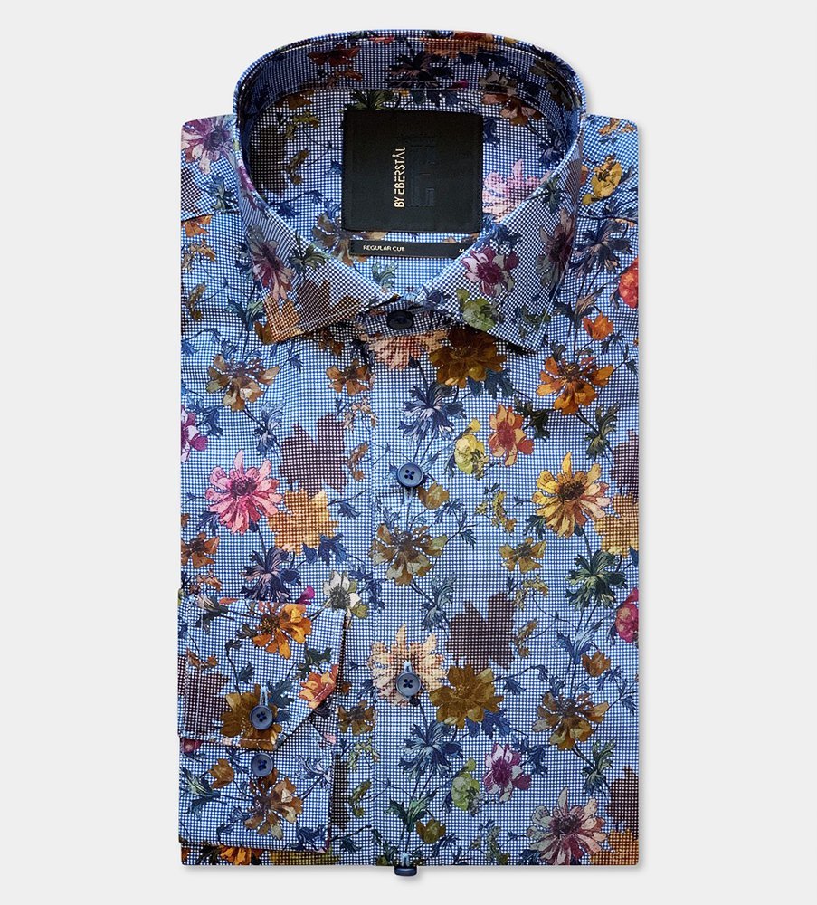 Härligt mönstrad skjorta i blå toner, för dig som vill ha det bästa. Pixelmönstret ger skjortan mystik och djup samtidigt som den är färgglad. En skjorta som är lätt att matcha med både ljusa byxor och kavaj till fest och jeans och tröja till vardags. Modellen är Regular-cut med insnitt bak för en perfekt passform.