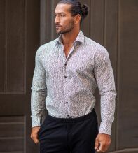Skjortan för både midsommarfester vid sommarängar och skördefester vid sensommaråkrar. Skjortan har vår Regular passform med insnitt i ryggen som ger en fin silhuett. Den stiliga skjortan är tillverkad i 100%-bomullstyg med textiltryck och har mörkgröna knappar som matchar mönstret. Manschetterna har dubbla knapphål för att kunna användas både knäppta som sådana eller med manschettknappar.